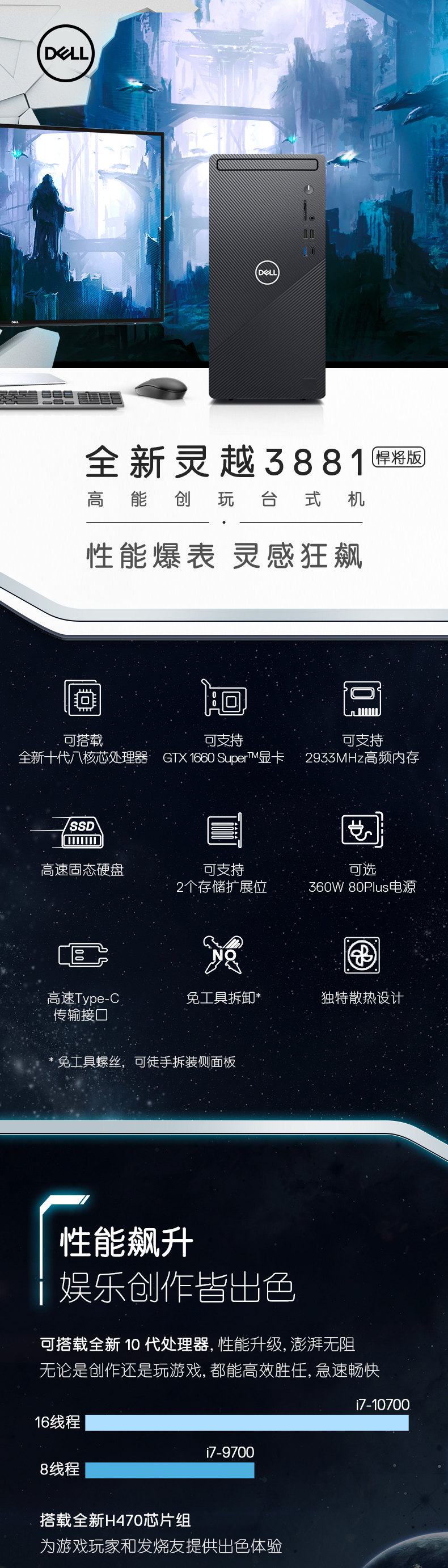 DELL/戴尔 Ins3881十代i5/i7游戏台式机1650S/1660S办公主机电脑家庭台机电竞官方灵越独显