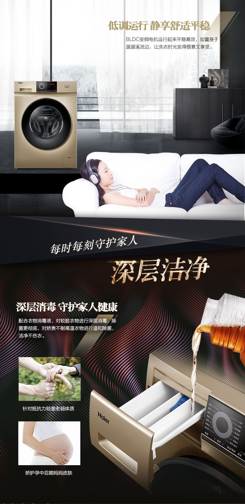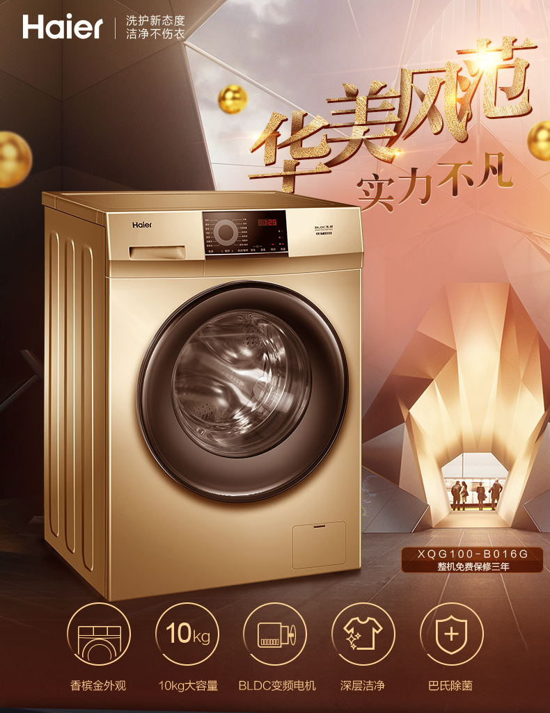 海尔变频滚筒洗衣机全自动9/10公斤家用静音