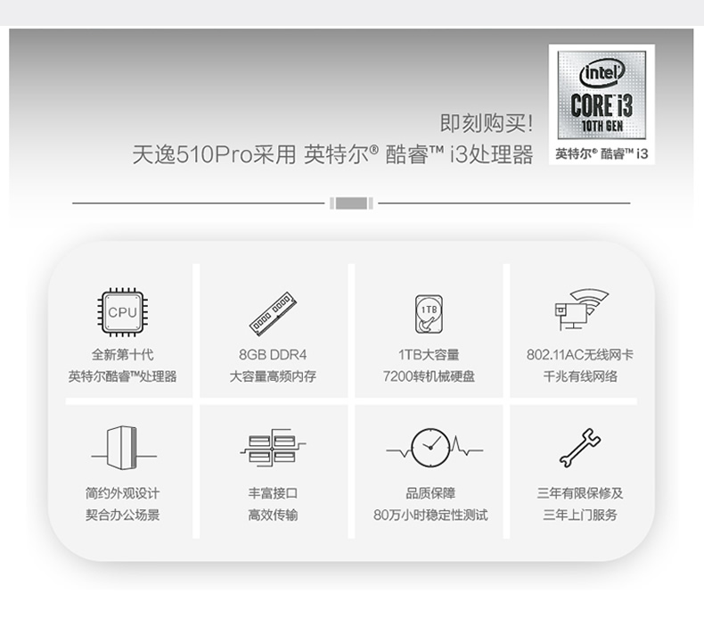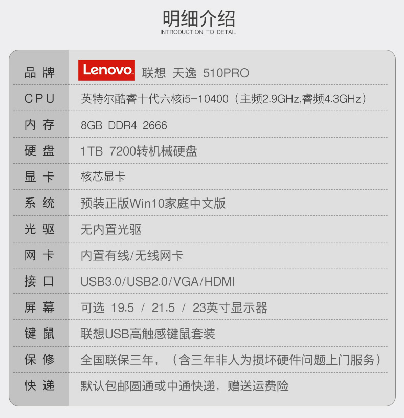 新款联想台式机电脑天逸510s 510pro 十代六核i5-10400/四核i3-10100 家用商用办公网课游戏设计整机主机