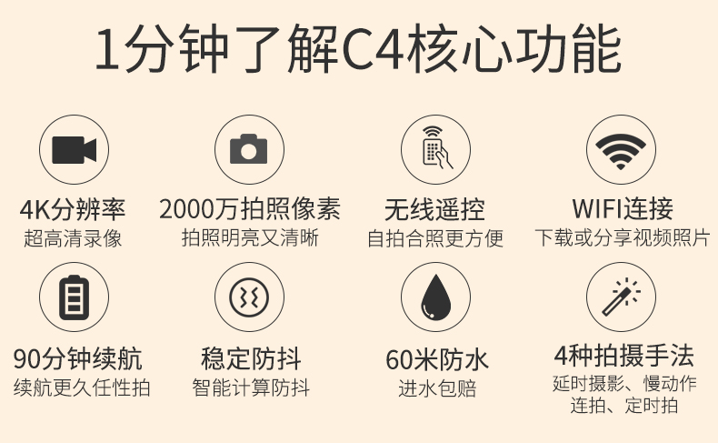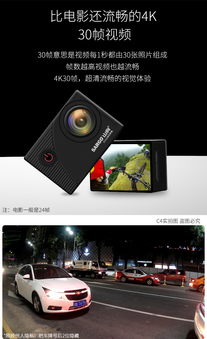 山狗C4运动相机4K高清水下摄像头盔迷你360全景骑摩托行车记录仪